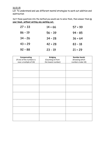 Mental Maths Strategies Compensating Bridging And Number Bonds Teaching Resources
